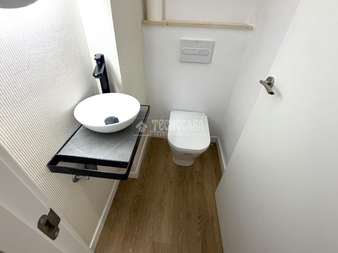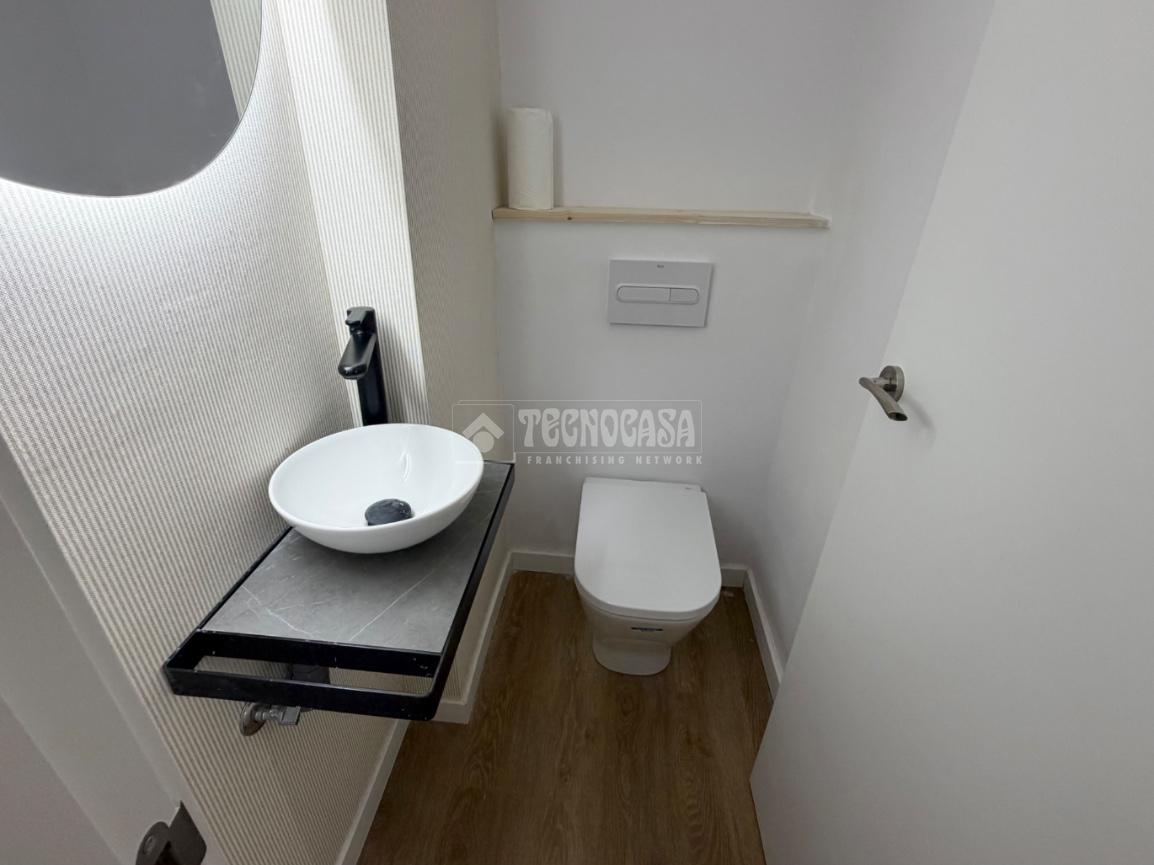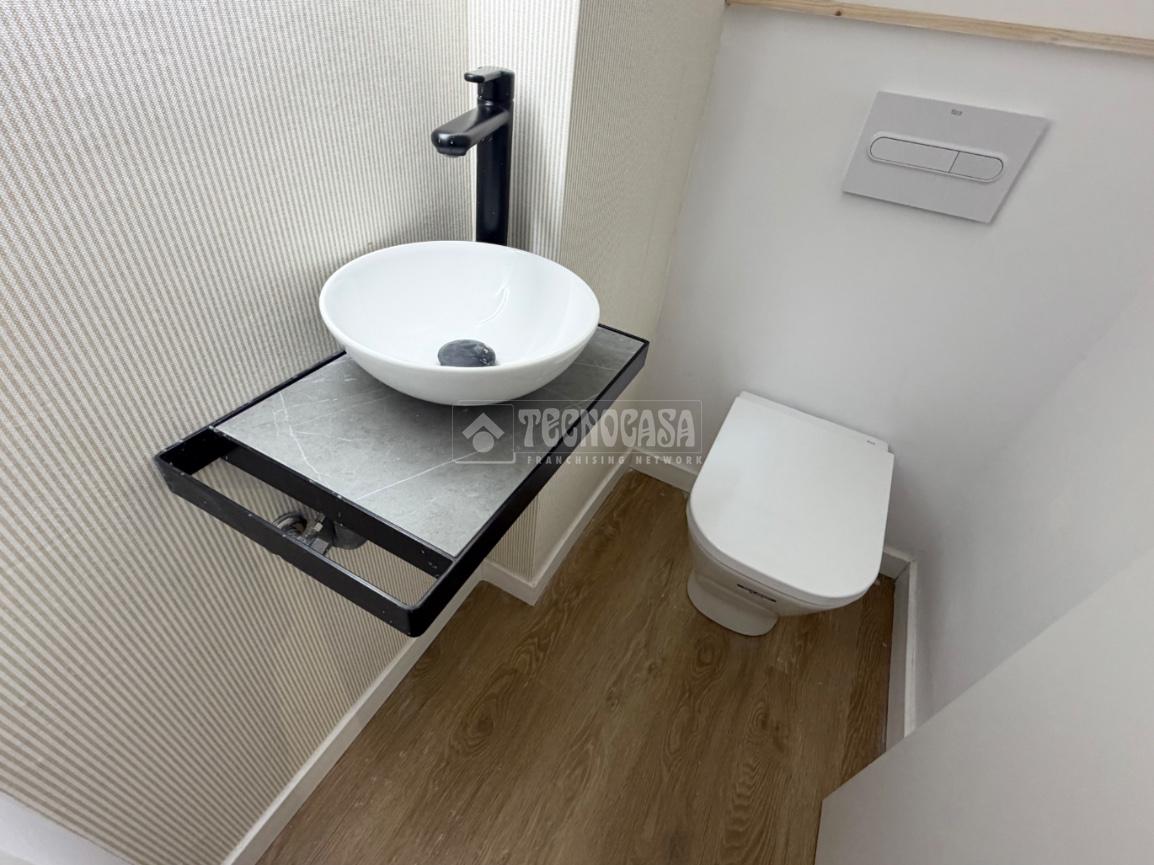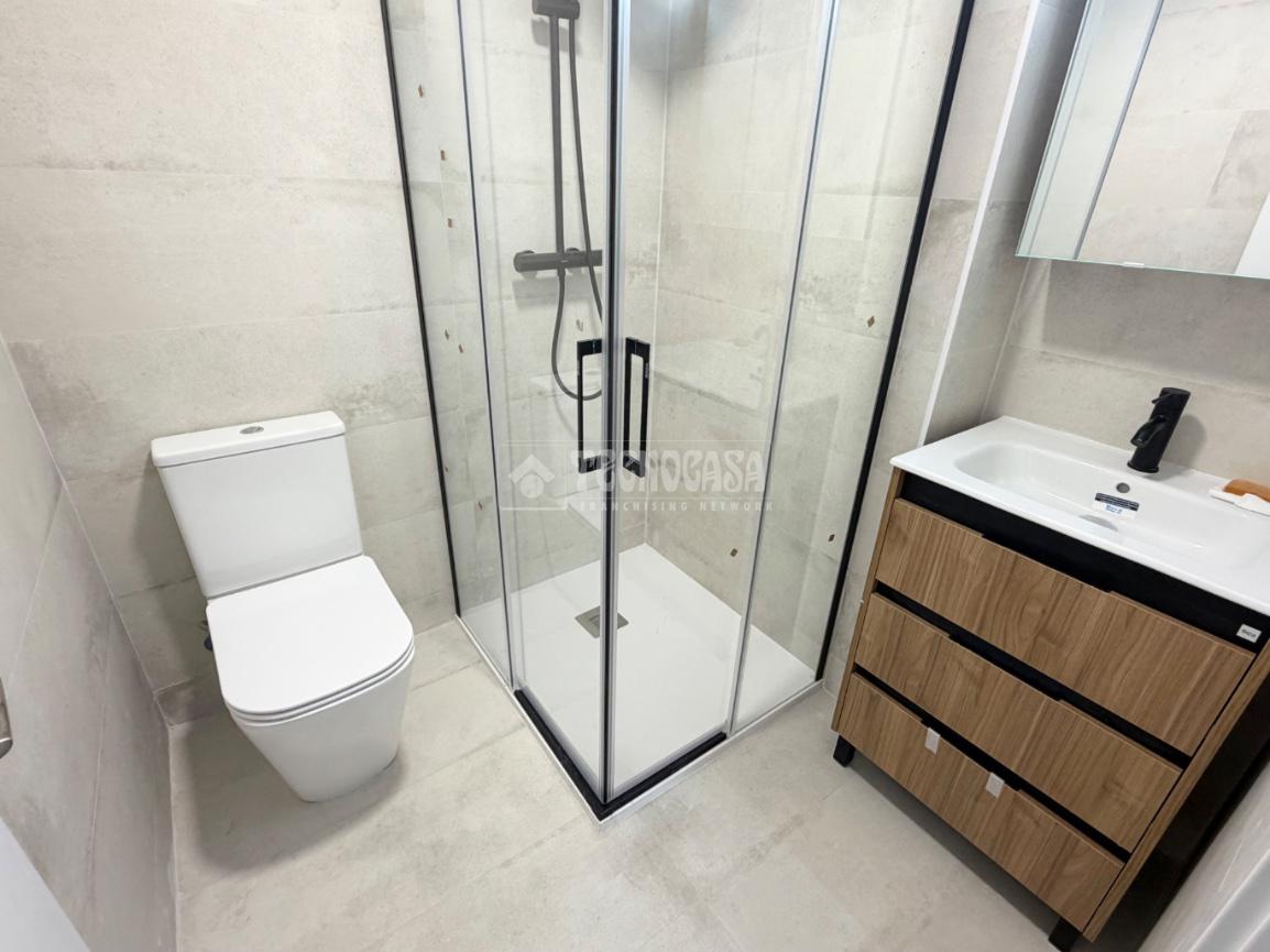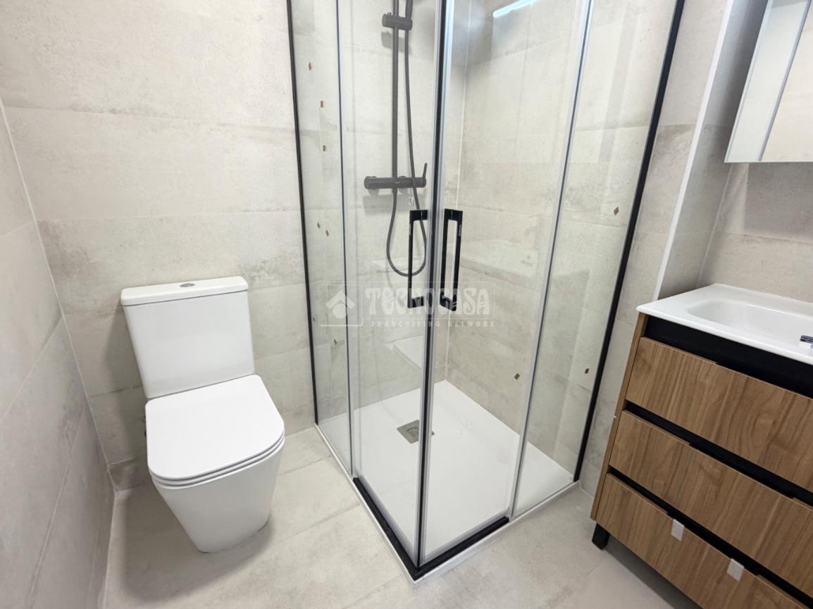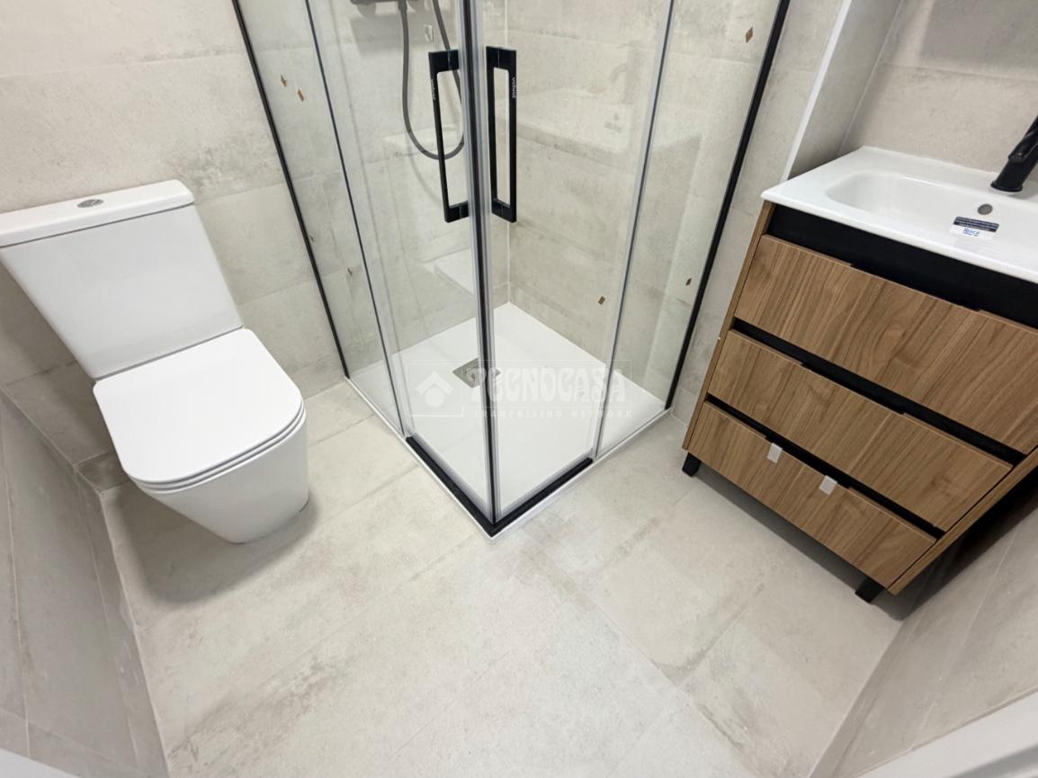 La vivienda tiene un baño reformado con plato de ducha y un aseo.